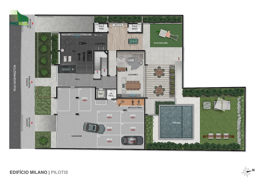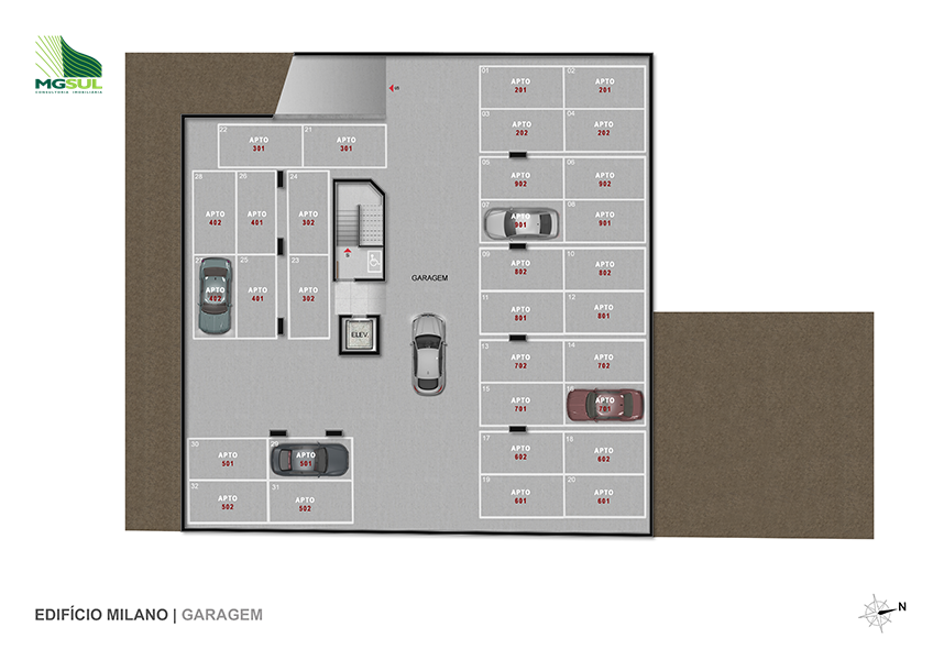 O Edifício Milano composto de 01 (uma) torre residencial, com 11 (onze) andares, sendo 01 (um) pavimento de garagem, 01 (um) pavimento de lazer e garagem, e 09 (nove) pavimentos de apartamentos, 01 (um) elevador com paradas em todos os pavimentos, exceto para o segundo pavimento das coberturas, com um total de 18 (dezoito) unidades autônomas.