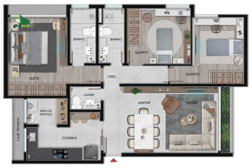 ESTA UNIDADE APTO 802 COM 90 M2 , SALA ESTAR/JANTAR , LAVABO ,